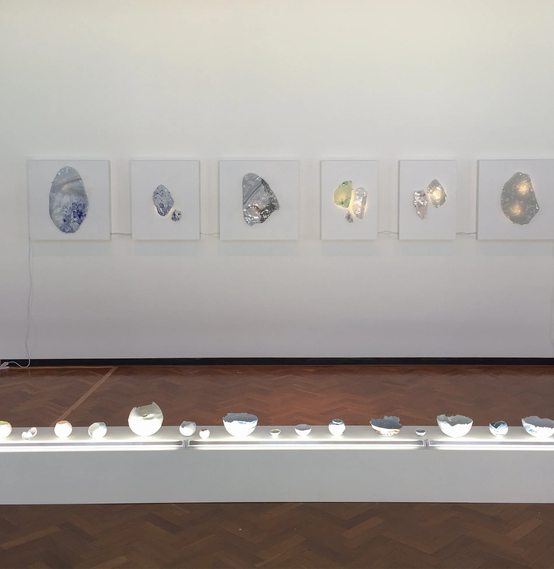 Elemental Entanglements(porcelain, oxides, stoneware, rare earth oxides, glazes, fluorescent lights, led lights)2017 View fullsize View fullsize View fullsize View fullsize View fullsize View fullsize